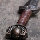 Epic Armoury’s Battleworn Celtic Leaf Sword is a latex-hybrid long sword inspired by the Celtic tribes of early history. The sword is 60 cm long from tip to pommel, with a double-edged blade designed for chopping thanks to its leaf-like shape. The detailed crossguard and crescent pommel features gold accents and protects a sculpted grip. The handle is cast and painted to look like leather and is ergonomically shaped, allowing for comfort and an impressive appearance without requiring leather maintenance. Featuring unique painted and sculpted detail effects such as rust stains, nicks and scratches.