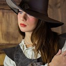 Half-brimmed leather hat made by hand, musketeer style. The edges of the wing are moldable to place it to taste, and are reinforced to ensure its durability.